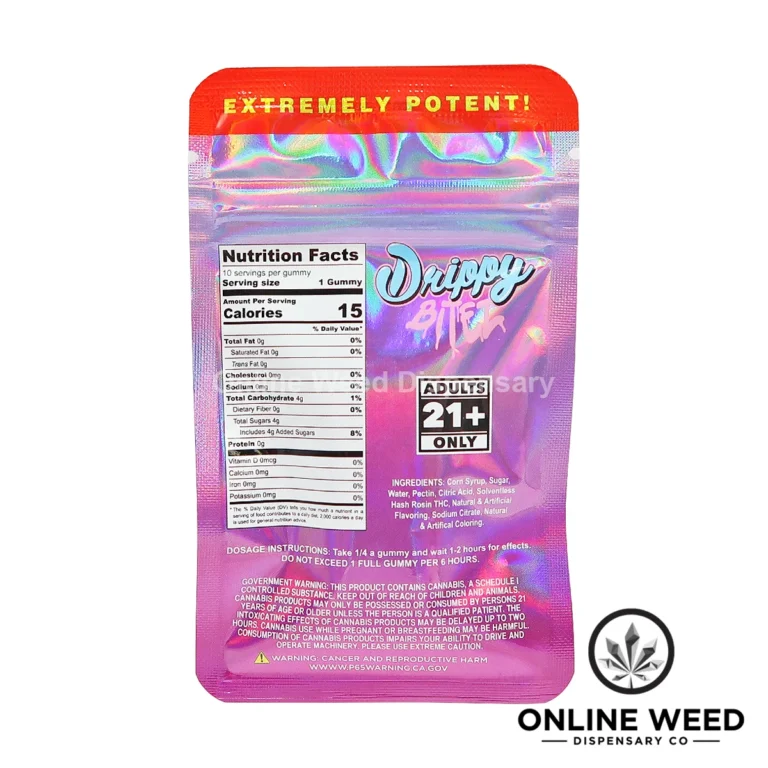 You're viewing: Drippy Bitez 200mg Rosin Infused Gummies – Grape $24.99